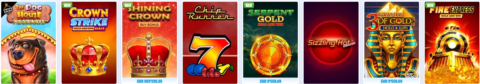 Jackpot‑Titel richten sich an Spieler, die auf progressive Gewinne setzen. Die Jackpots wachsen mit jeder platzierten Runde und können beträchtliche Summen erreichen. Auf der Website sind mehrere Hold-and-Win-Automaten sowie progressive Spielautomaten verfügbar. Einige Titel sind regelmäßig in den Top‑Listen vertreten. Dadurch bleibt die Kategorie auch langfristig interessant.